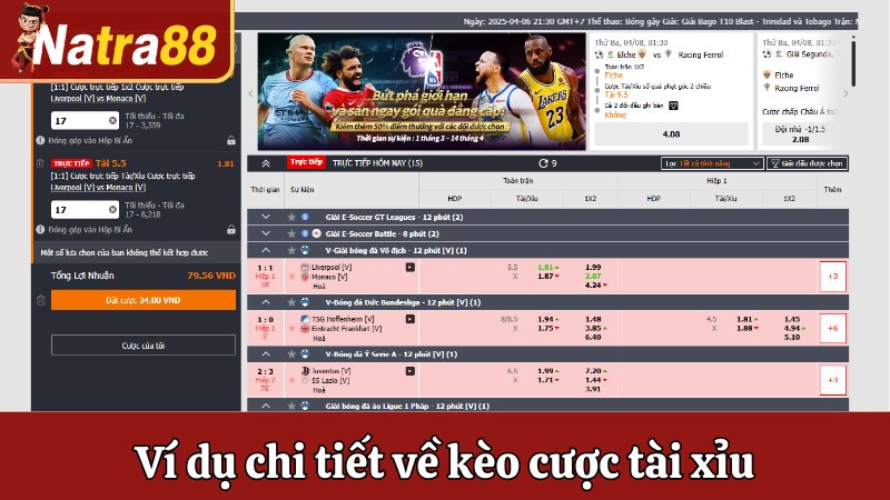 Ví dụ minh họa về kèo tài xỉu trong bóng đá